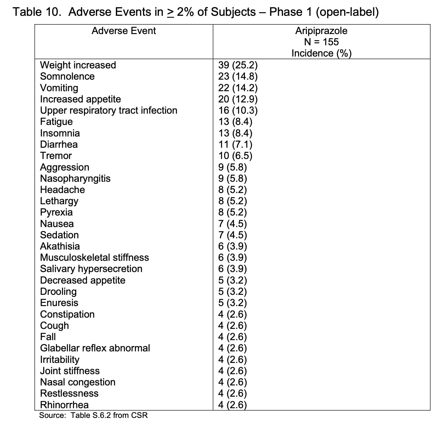 This is a lot of indications for any one drug. Honestly, I think, in retrospect, this speaks well of the team at Otsuka—they didn’t just promote it off-label illegally and pay the fines later like Gabapentin. Oh, wait.—they also promoted it illegally according to the $4m settlement with DOJ.