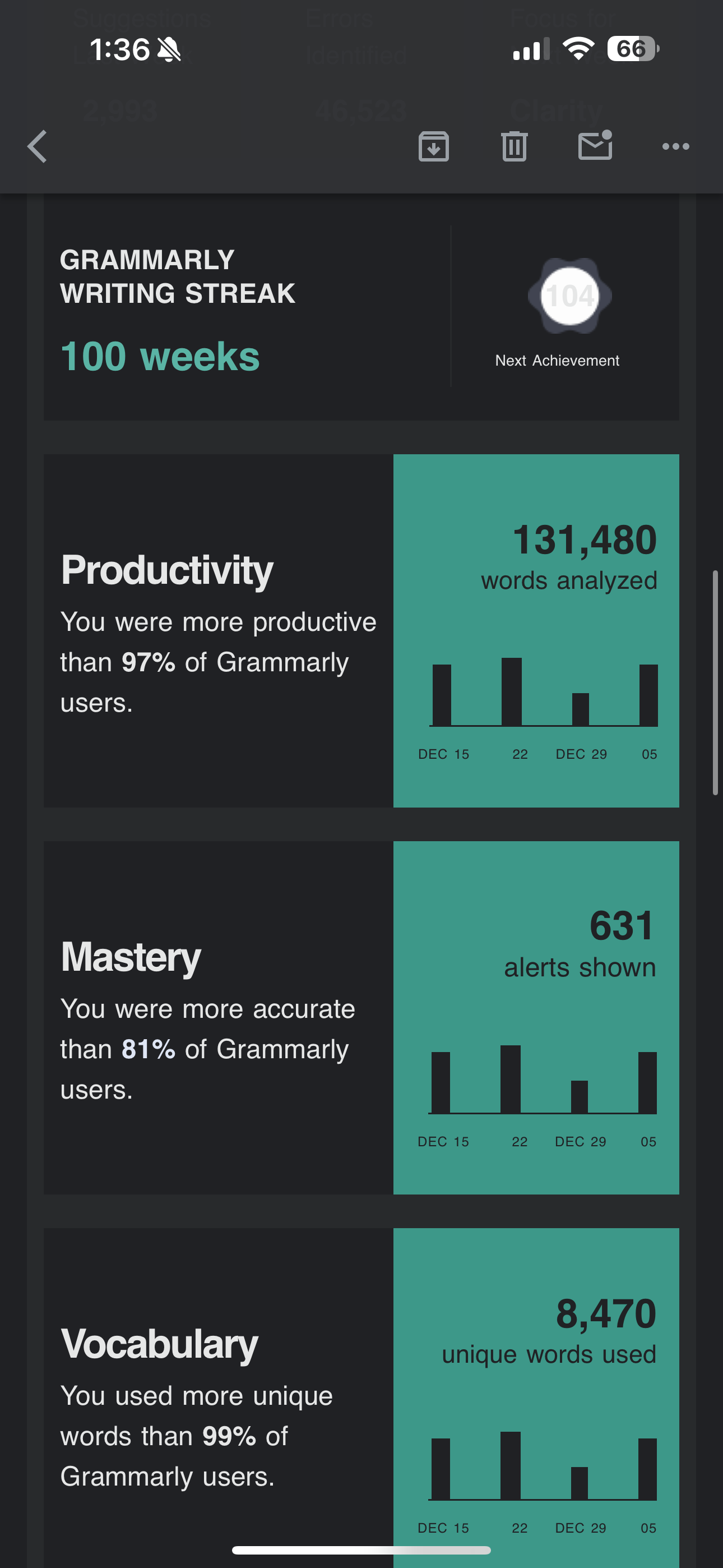 What you're not saying is maintaining your Grammarly lead is a big incentive for writing. Like being in the Top Ten of a public video game.