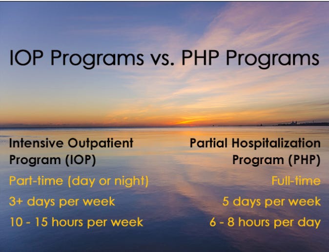 Pat ended up getting care in the ER. If you're getting care in the outpatient setting, you’re meeting a “level of medical necessity.” The medical necessity criteria for inpatient versus outpatient care in behavioral health have additional levels, including intensive outpatient programs (IOP) and partial hospitalization programs (PHP).