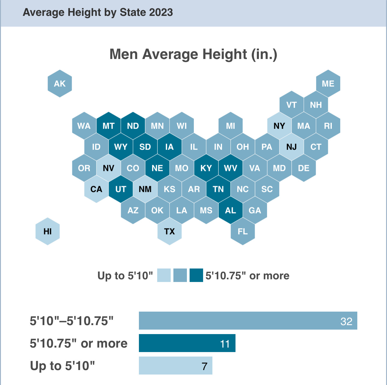 The average height of American males is 5’9”.