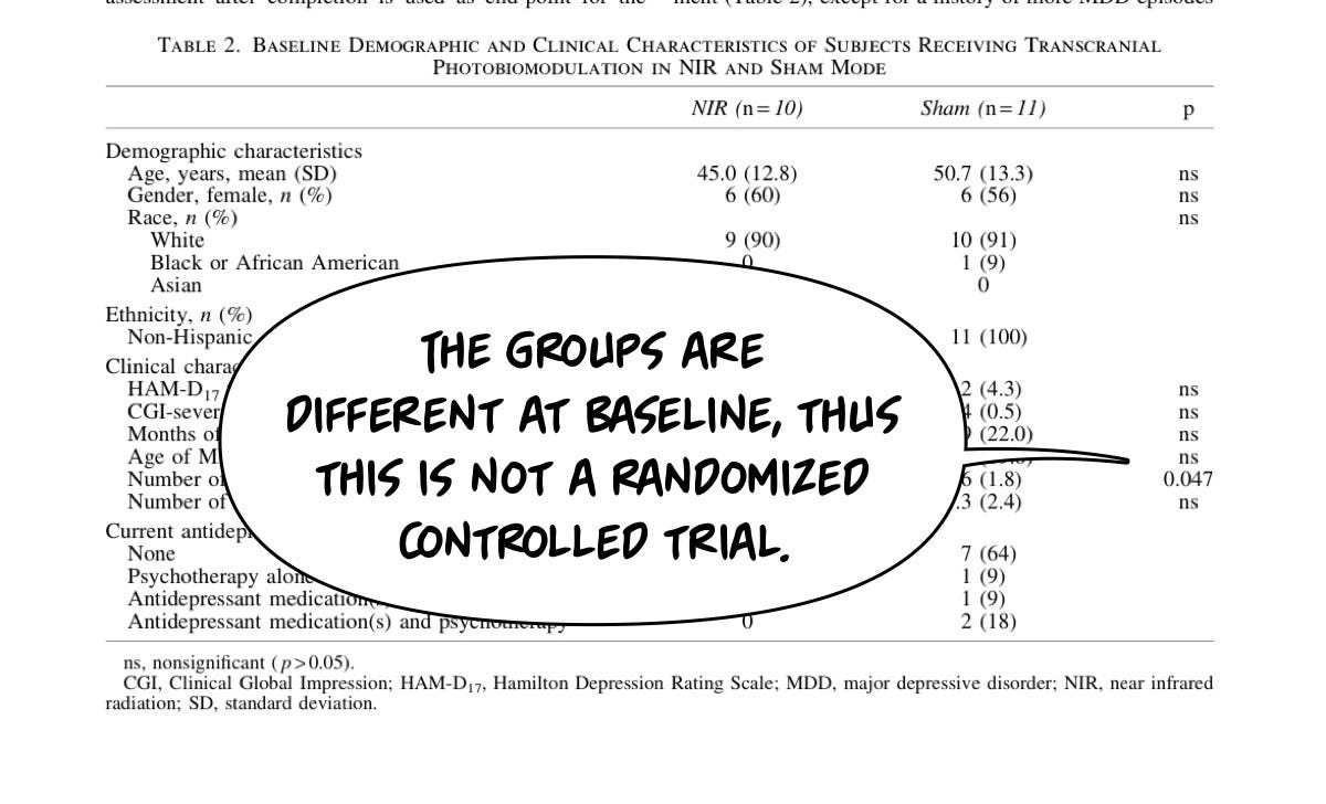 I have yet to see a paper on photobiomodulation that is an actual science experiment for the treatment of a disease in which the randomization was successful. This is not to say there could not be such a paper.