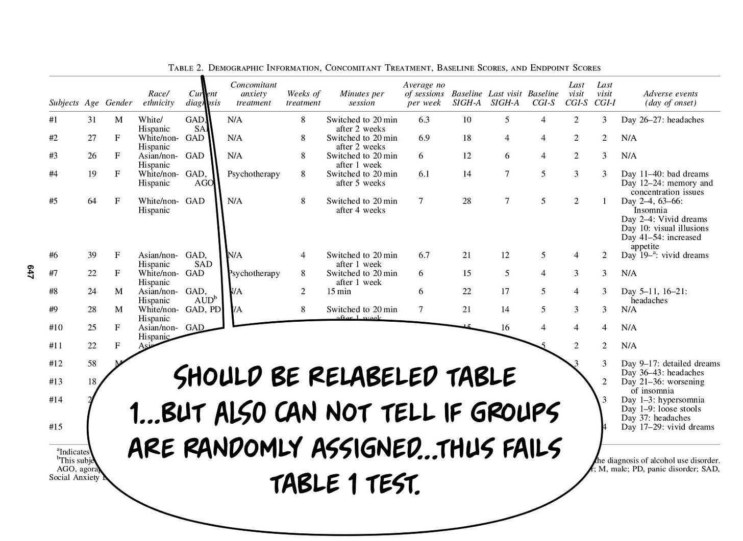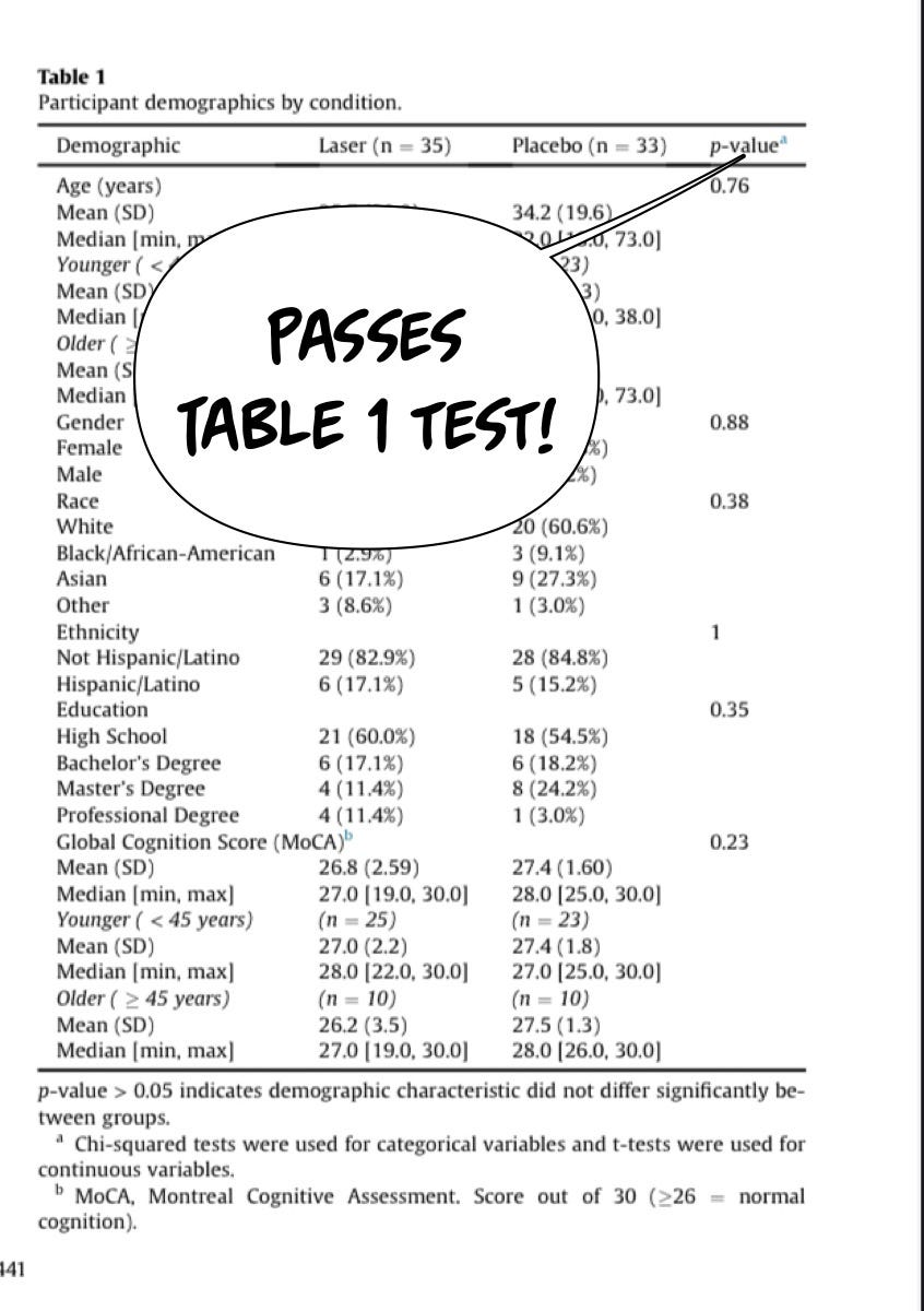 “if table one indicates it’s not a successful randomization, you can stop now.”