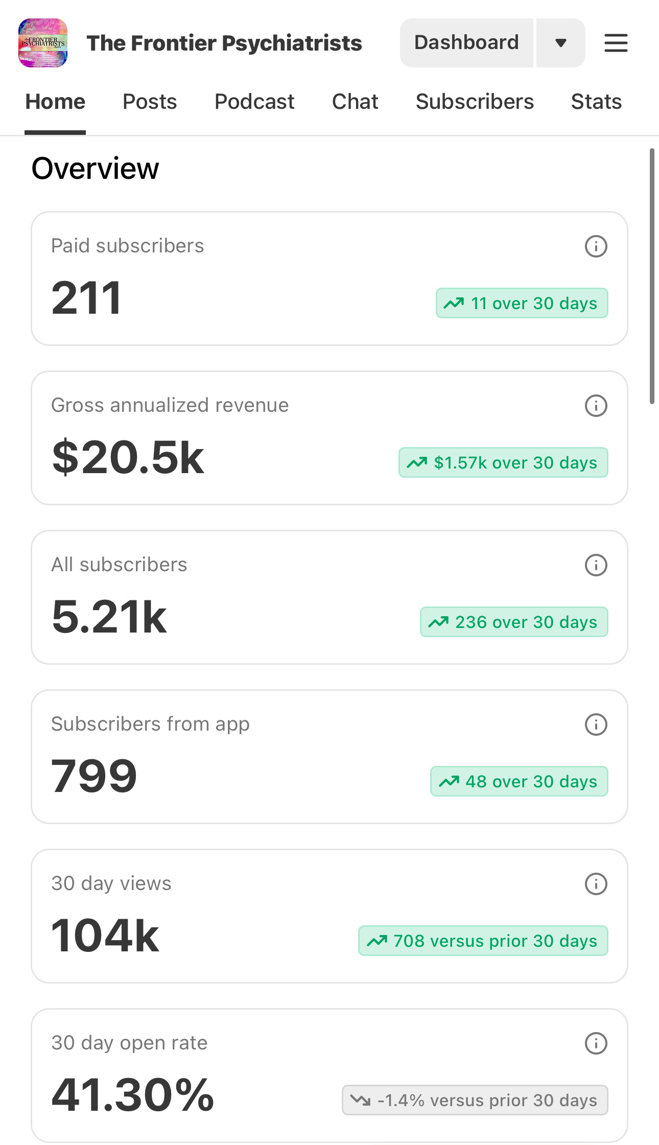 This very newsletter? It’s a product. Yes, a subscription model. I actually make a non-trivial amount of money writing the this article that you may be reading right now! In the spirit of radical transparency, here are my metrics from this morning: