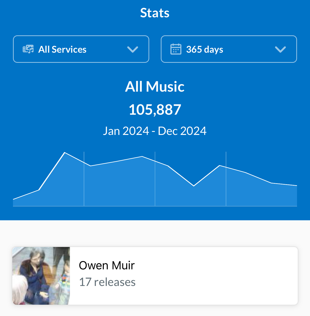 I’m a tiny music artist. In the past year, that is on just over 100,000 streams.