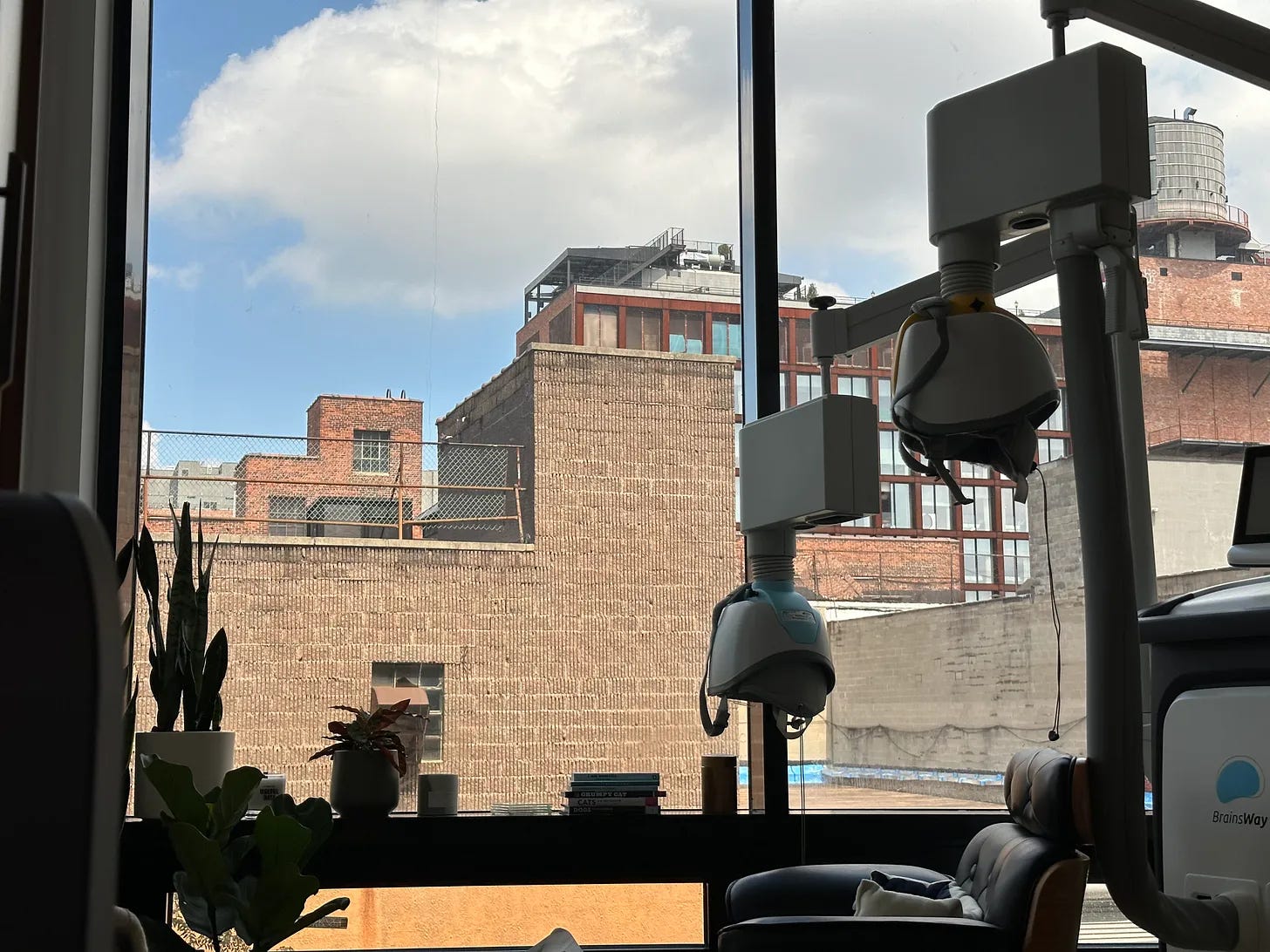 Let's imagine I had a strange neurological event. It's like a stroke, but I don't lose my vision. I have a weird phenomenon that doesn't allow my visual cortex to process TMS machines. I know. That sounds horrifying. It is really easy to simulate though—I'm just gonna focus on what's out the window:
