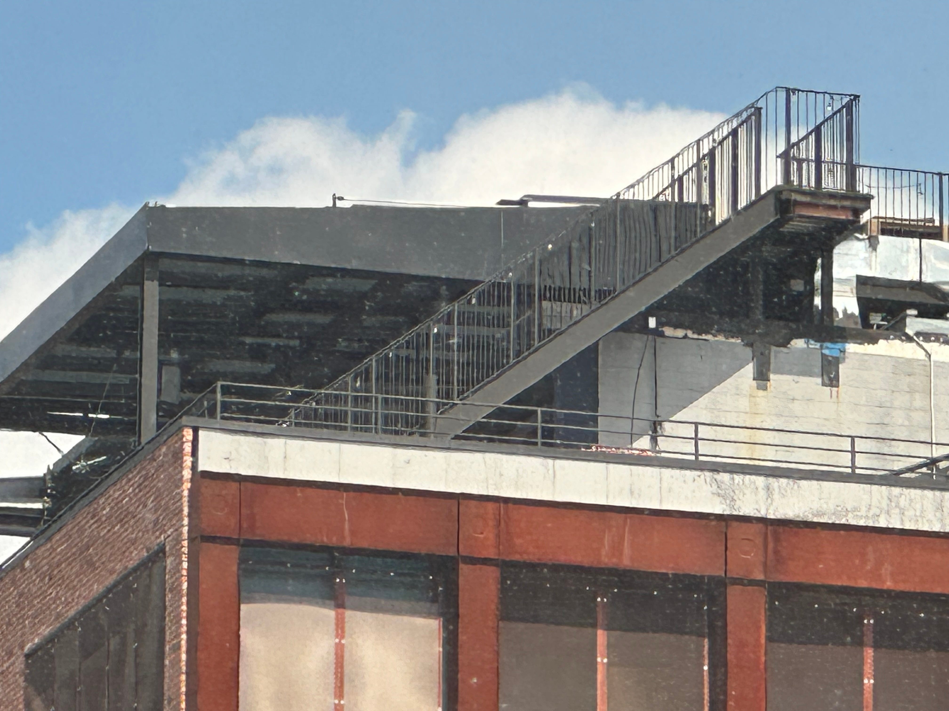 When it hits the building across the street, those photons bounce. Some of them bounce, after that absorption and re-emission process, and fly through space, through the window, bounce off some things in my office.