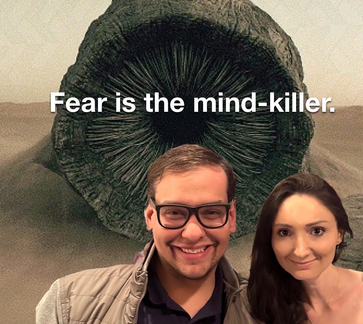 There he is. Hanging out in front of a giant sandworm. Reminding us all that fear is the mind-killer.