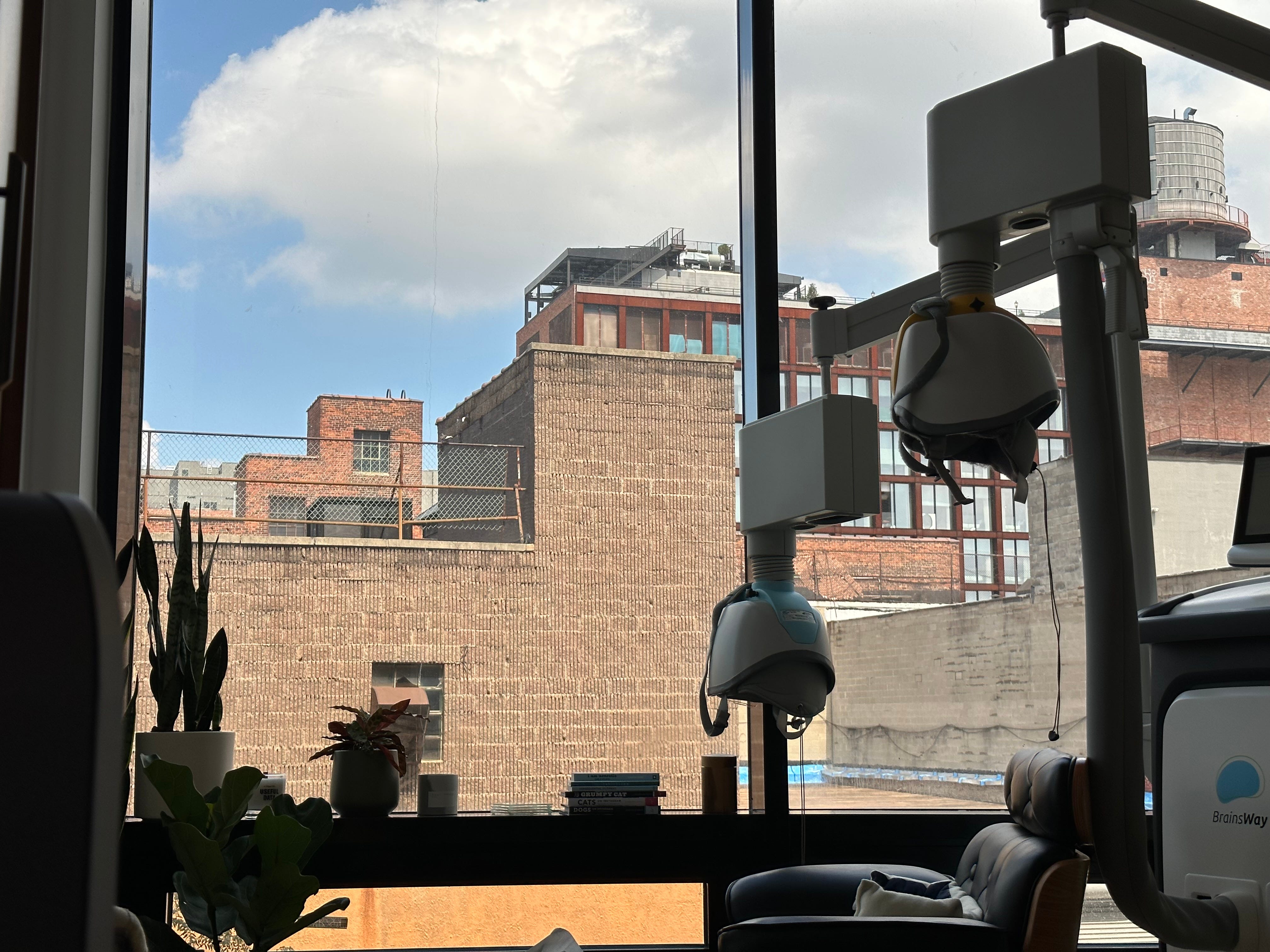 I am sitting in my office, and in front of me is a window, some plants, and a medical device. It is one of the tools we used to get depression to remission without any medication. That remission is in people have responded to nothing else.