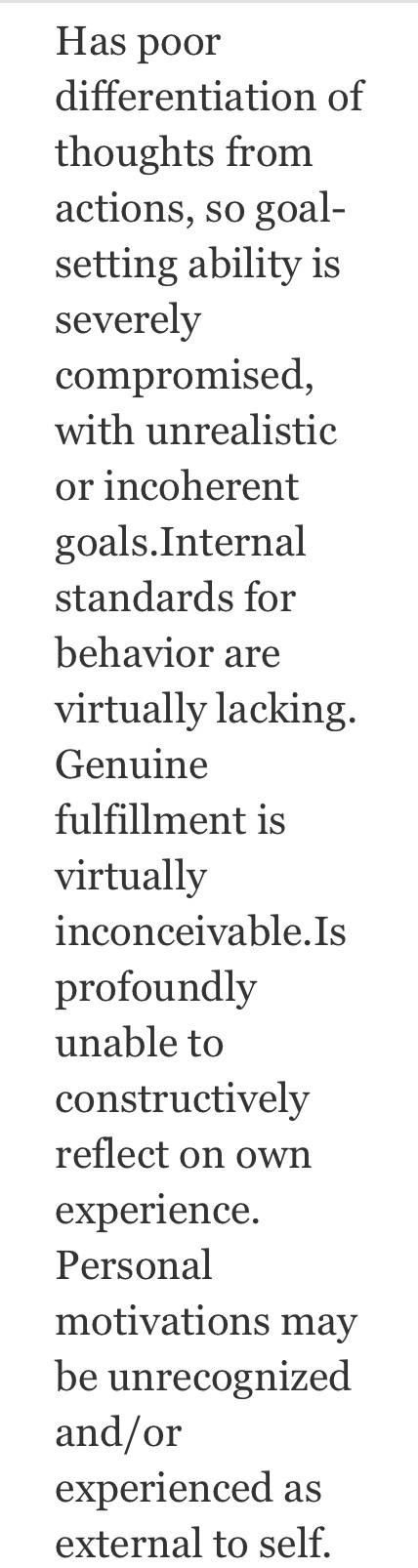It's interesting that the DSM describes so many traits that CHILDREN have. In adulthood it's a condition. In childhood, I assume?--it's a developmental stage.