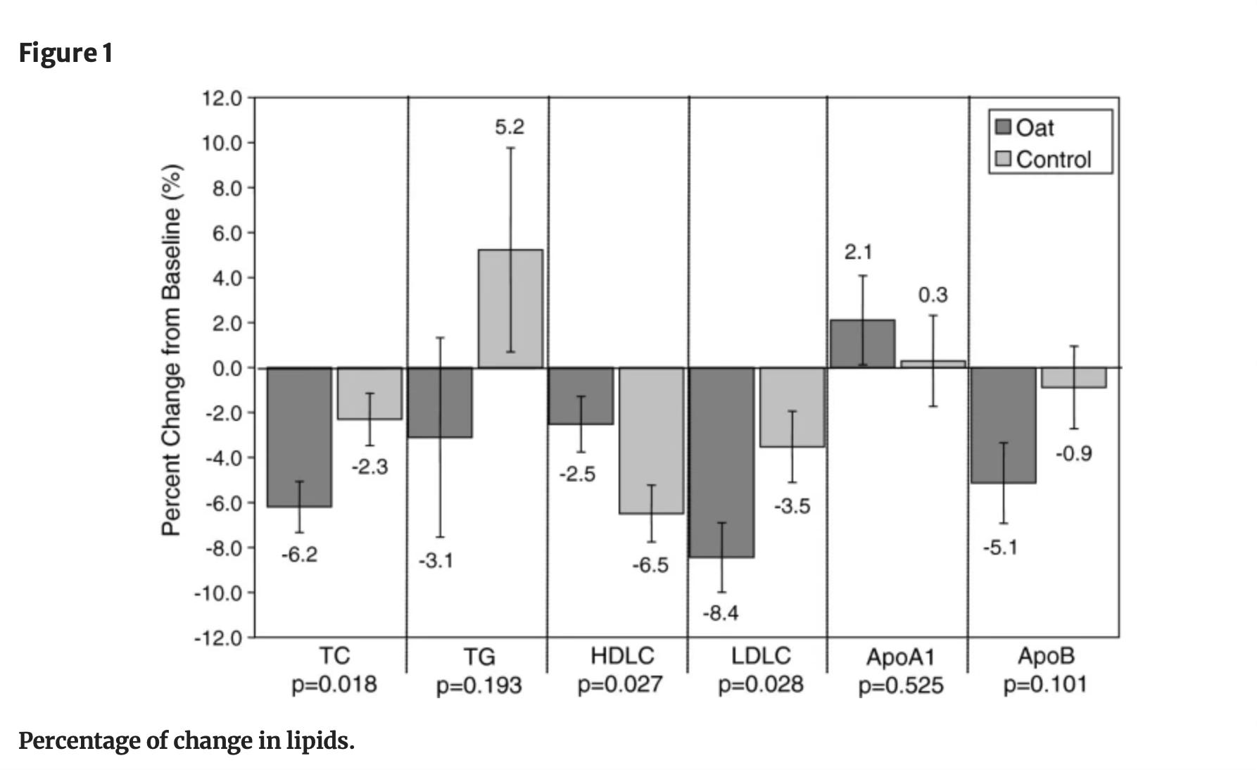 Cai, X., Dang, Q., Liu, L., Ma, Z., Zhao, X., Zhang, M., ... & Yu, H. (2022). Oat nutritious meal has beneficial effect on lipid metabolism in type 2 diabetes mellitus: A 3-month randomized controlled trial. Journal of Functional Foods, 95, 105156.