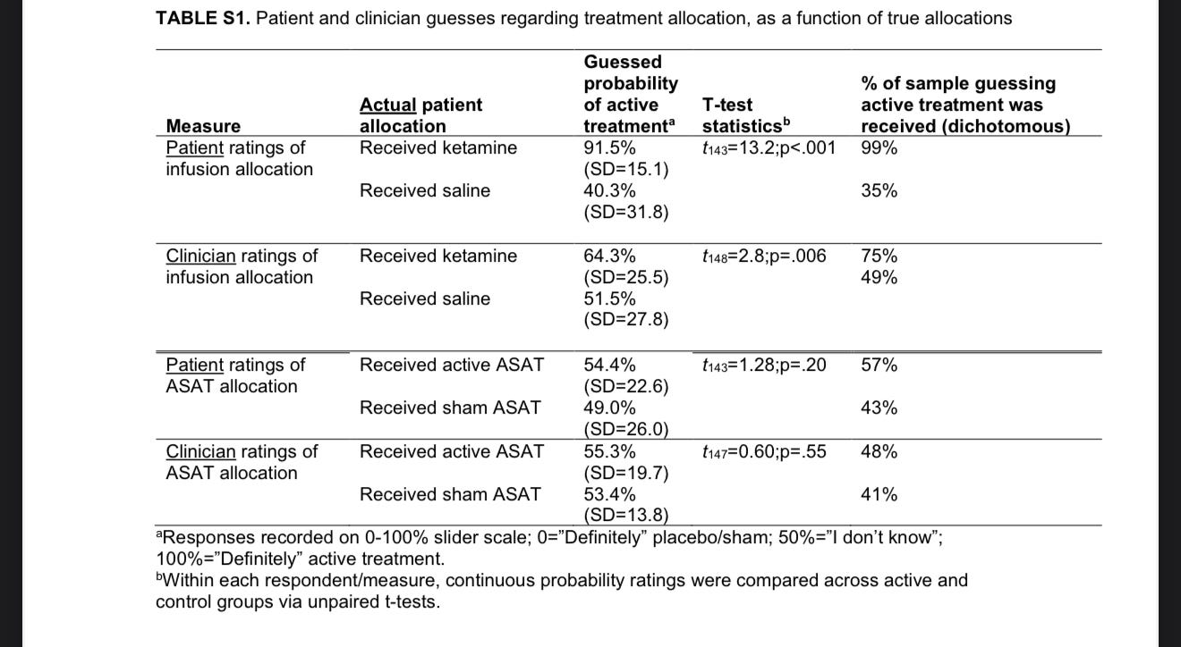 Oh, and of course, the blind was broken with a saline control, but not with the sham therapeutic: