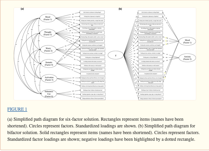 We can ask if a two-factor model (there are two underlying problems) is (or is not) a better model fit than a single-factor model, which Caspi and Fonagy called the “General Psychopathology Factor” or the “P factor.” What they found matters, for how we think about problems of the mind.